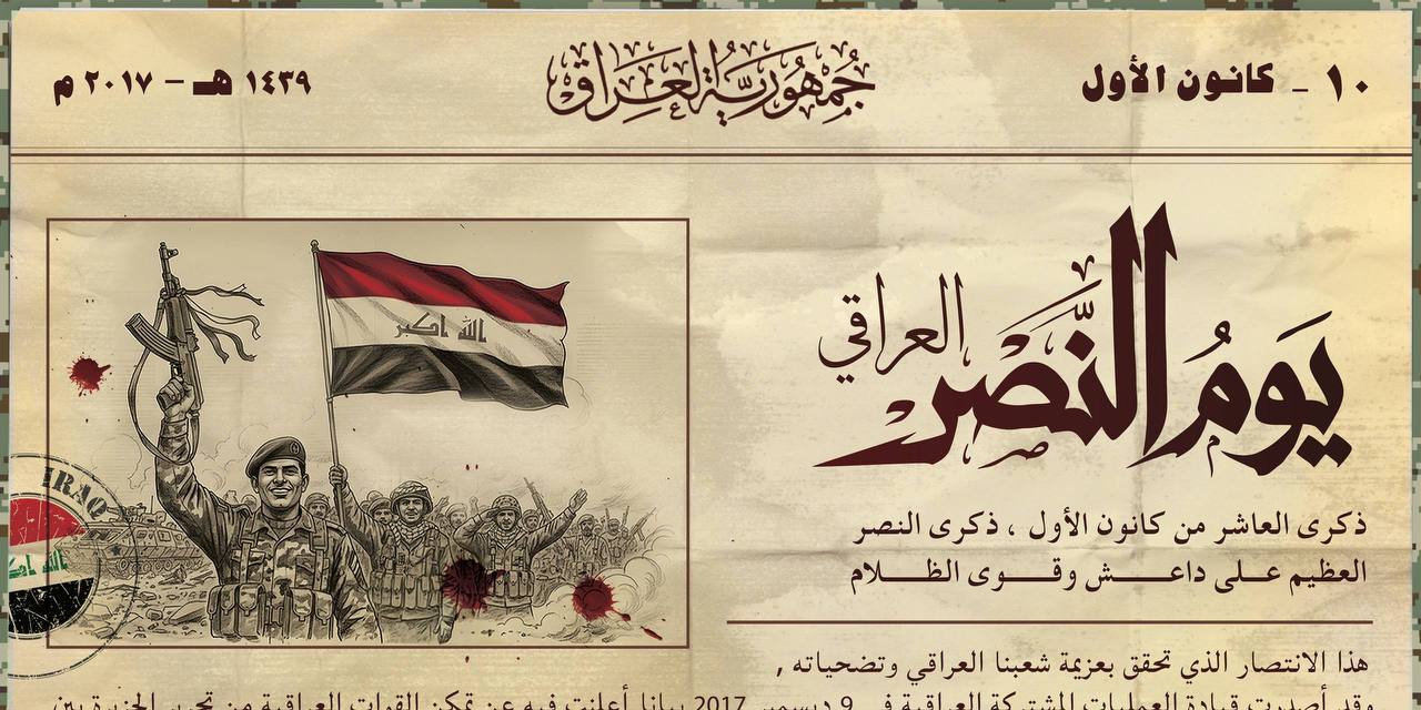 تحلّ الذكرى الثامنة ليوم النصر العراقي في 10 كانون الأول/ديسمبر لتعيد إلى الذاكرة واحدة من أهم المحطات في تاريخ العراق الحديث؛ اليوم الذي أعلن فيه الشعب العراقي بكل مكوّناته الانتصار على تنظيم داعش بعد سنوات من القتال الشرس والتضحيات العظيمة.
