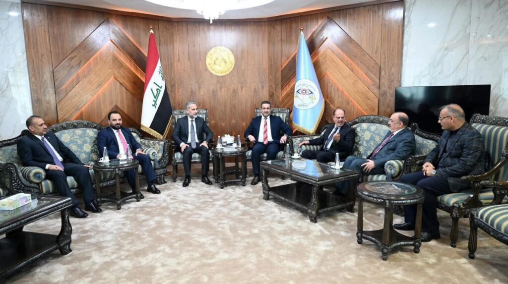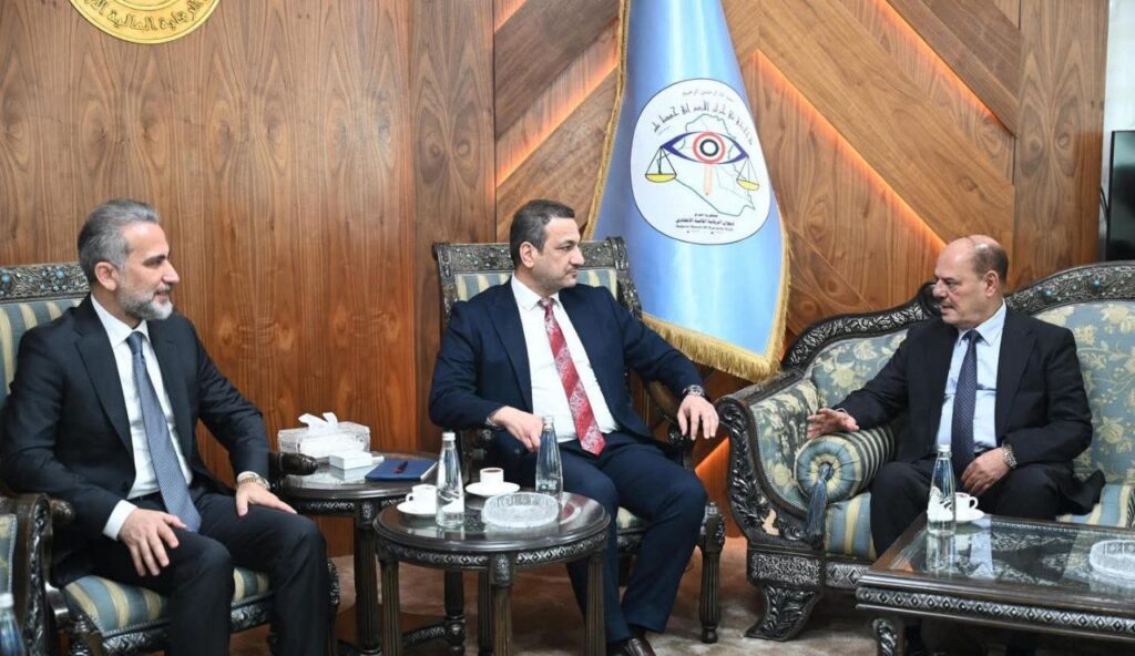 أكد رئيس مجلس مفوضي هيئة الإعلام والاتصالات، الدكتور بلاسم سالم ، على دعم الهيئة الكامل لجهود التقويم المؤسسي وتعزيز الشراكات مع الأجهزة الرقابية، جاء ذلك خلال لقاءه برفقة عضو مجلس المفوضين السيد مؤيد اللامي ، برئيس ديوان الرقابة المالية الاتحادي الدكتور عمار صبحي خلف.
